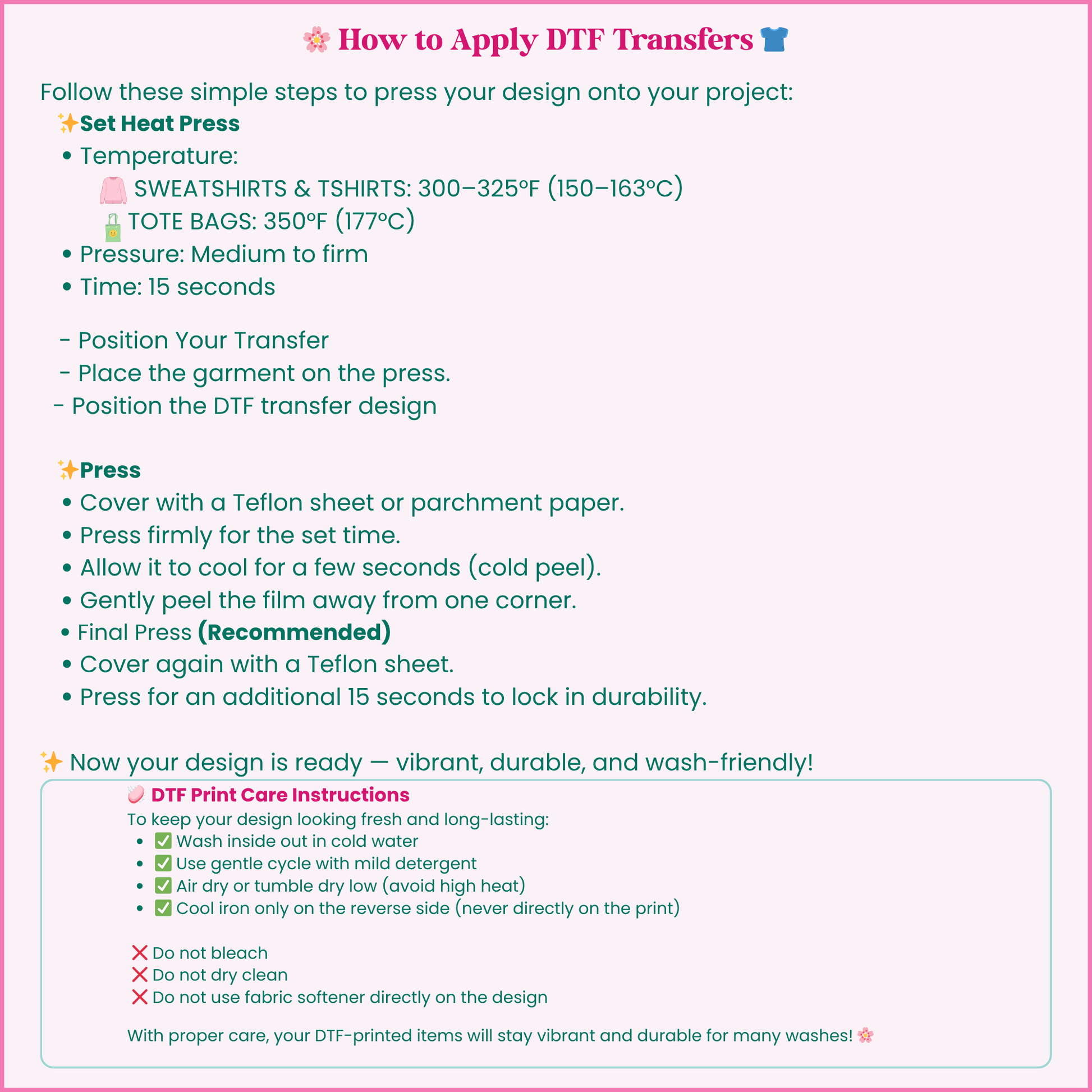 - Cute, colorful, and durable DTF transfers made for DIY crafters and small shops!Β